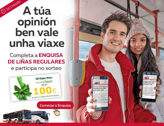 A partir do 1 de xullo, aplícanse os novos descontos no transporte público interurbano de Galicia. Mantéñense as bonificacións do 100%, na Tarxeta Xente Nova e a Tarxeta +65. A Tarxeta da Mobilidade de Galicia (TMG) ten unha bonificación do 40%. Aproveita as vantaxes para viaxar con descontos nas nosas liñas. Información das tarxetas en bus.gal